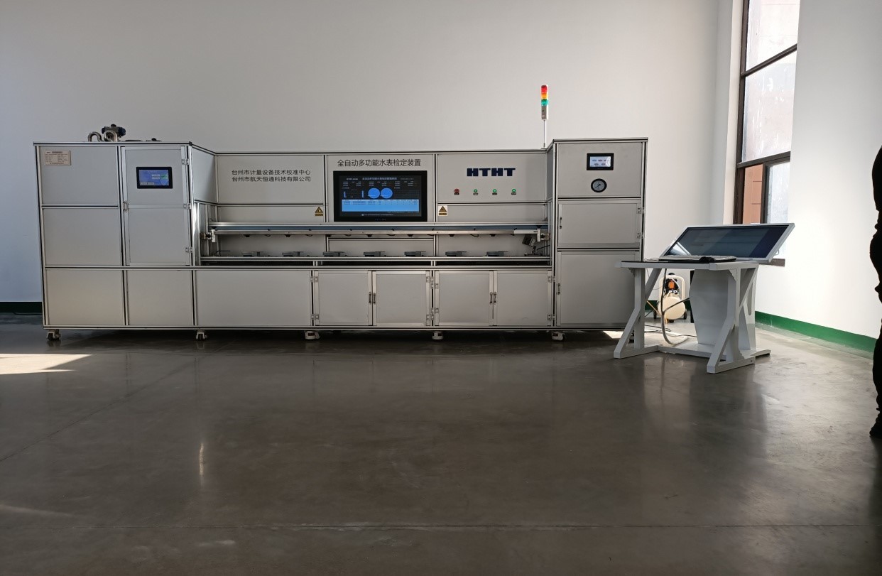 HTJC-SB1000全自动水表检定装置(影像式)整机采用一体性设计,轮毂式设 计移动方便,所有设备都放在机柜里,外观简洁,上下排设 计符合人体工程学原理。伺服电机流量调节,无极调速,实 现3L-6300L任意流量点调节。高速摄像视频采集,识别准 确高效。水表信号触发器和扫码器安装在高精度滑轨上,完 成水表表号得自动录入,信号触发器可以触发智能水表的电 磁信号并采集数据到网上平台,经数据处理后传回到本地系统