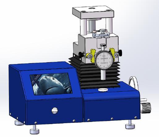 3)、旋转加力旋钮使硬度计向下移动,观察硬度计压针与的中心孔是否对齐并并能顺利的加载到硬度计的满量程。然后反向旋转加力旋钮上升,此时硬度计的顶针离黄铜垫块约3~5mm*为合适。