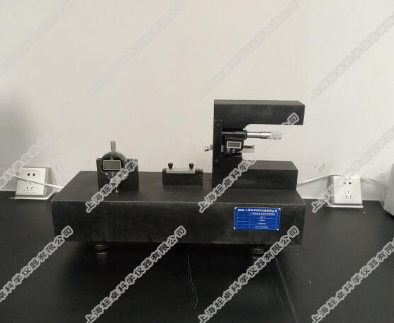 5.3.1.用检测好的电感测微仪或扭簧表作为对零使用,用测量架夹好扭簧表,使扭簧表测头对准测微头的中心,再用升降架或合适的台架放在测微头和扭簧表的中间,是能够保护量块及平稳放置和替换量块,通常用1mm的三等量块对零,再用合适尺寸来检测。