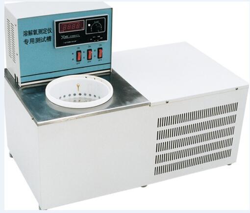 在溶解氧测定仪检定装置专用恒温槽里注入2/3容积新鲜蒸馏水(约8L),将多孔塑料浮盖浮于水面,水温调节到检定时所需的温度,开动搅拌器搅拌水样,同时加鼓泡器(即空气泵)向水中连续曝气60min以上停止曝气,水静止30min后即可用于检定。
